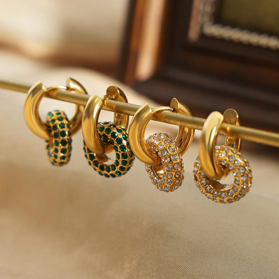 Dainty Classic and an Eye-catcher. These Gold-plated hoops with diamond donut loops are perfect to wear for work or date night. They come with diamond inlay donut which is removeable and can be worn separately as a necklace charm and the earrings can be worn with or without the diamond encrusted donut. This 3in1 piece is going to become your wardrobe staple.