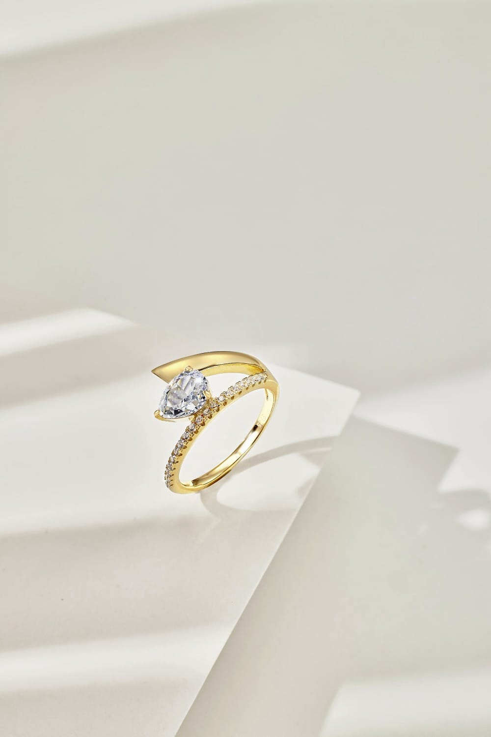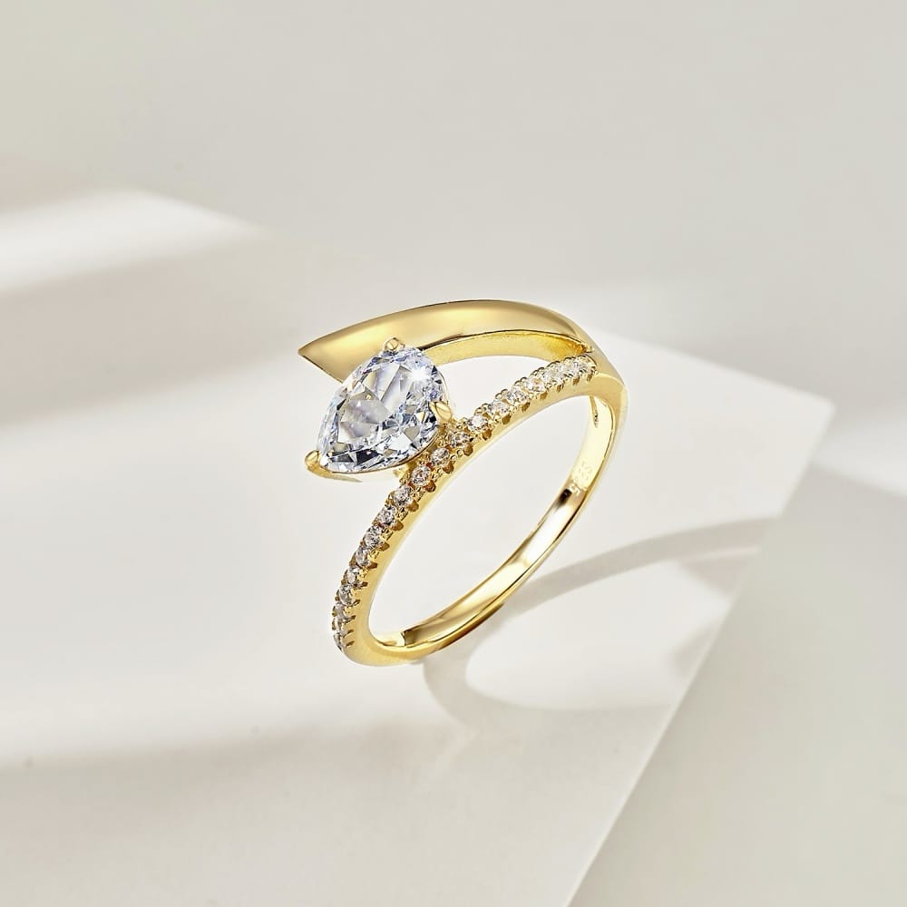 Our Stormi Ring comes with a stunning Pear shaped radiant cut centre diamond enveloped in a circle of tiny sparkling diamond inlay band. This eye of the storm diamond with an eye catching and elegant design is perfect addition to your ring collection. This unique design will make you shine in any room. Be ready for compliments when you wear our diamonds 💍